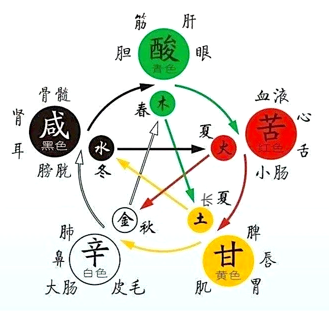 五味:酸、苦、甘、辛、咸